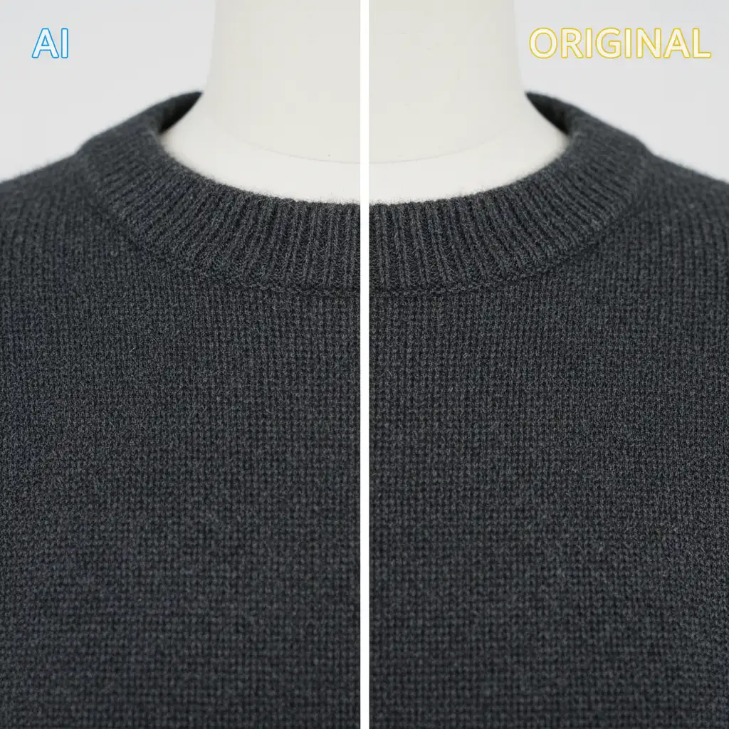 Depending on the complexity of the garment—from a simple cotton t-shirt to a heavy cable-knit sweater—you will need varying levels of texture restoration. Here are the three industry-standard methods to fix AI texture blurring.