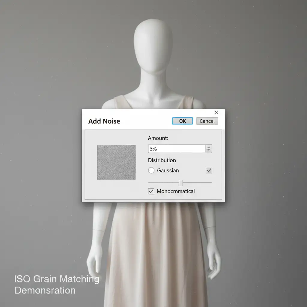 When the AI output is structurally sound but looks “too clean,” you need to reintroduce digital noise to match the original photograph’s fabric grain.