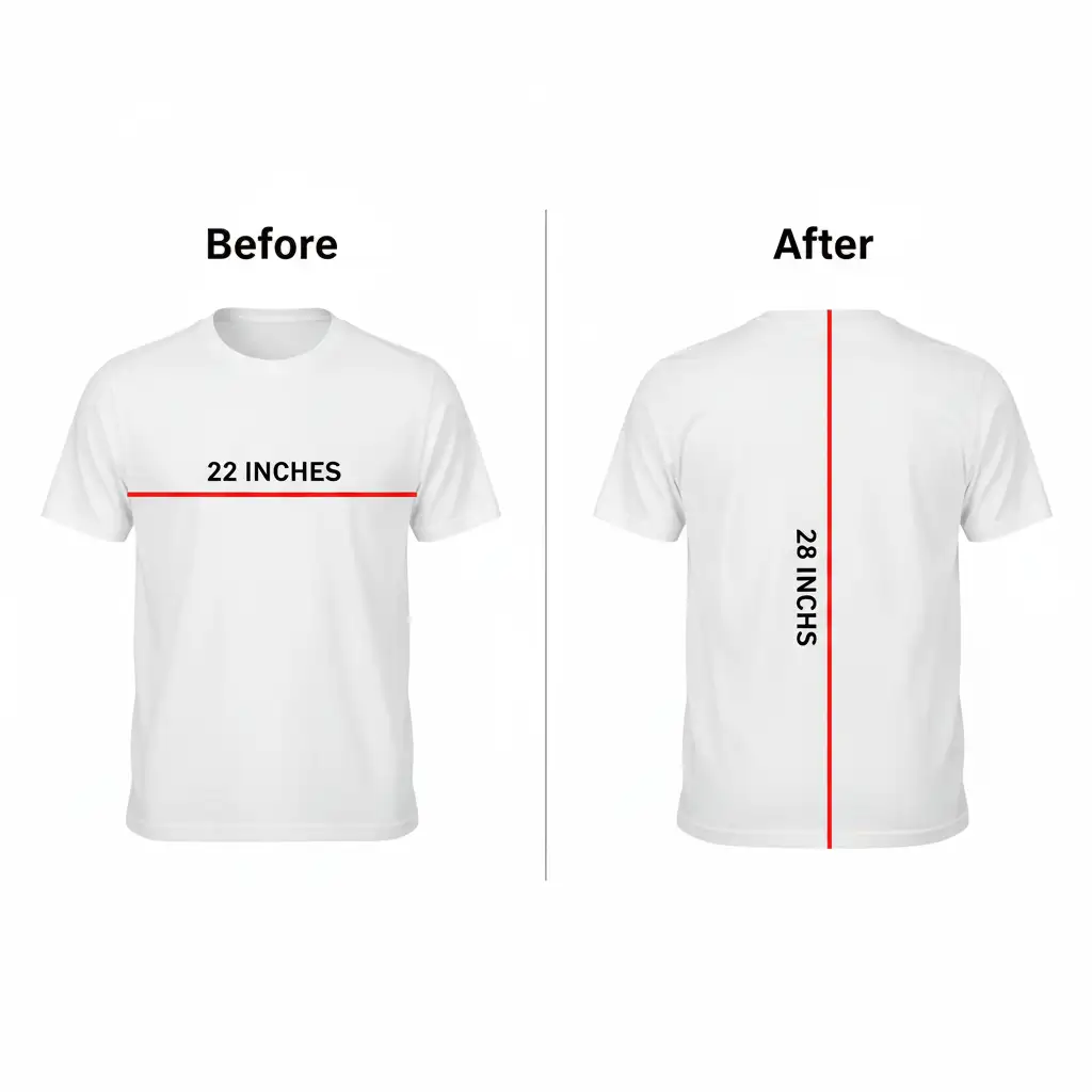 When customers shop online, they rely entirely on your visual data. A standard size chart is helpful, but showing exact dimensions directly on the garment—such as pit-to-pit width or collar-to-hem length—removes all ambiguity. However, manually drawing these lines on every single SKU is a massive workflow bottleneck.