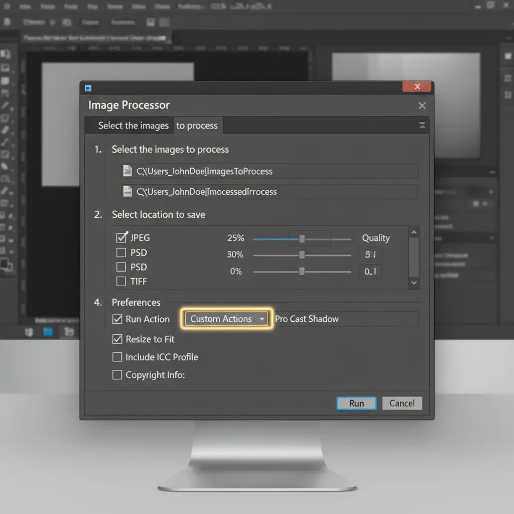 Once your Action is perfected, it’s time to scale. Applying this to thousands of images manually defeats the purpose. We will use Photoshop’s built-in batching engine.