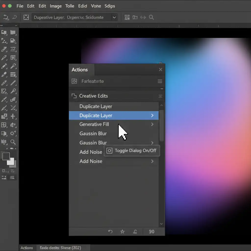 - In the Actions panel, locate the square box next to the Generative Fill step and click it to Toggle Dialog On.