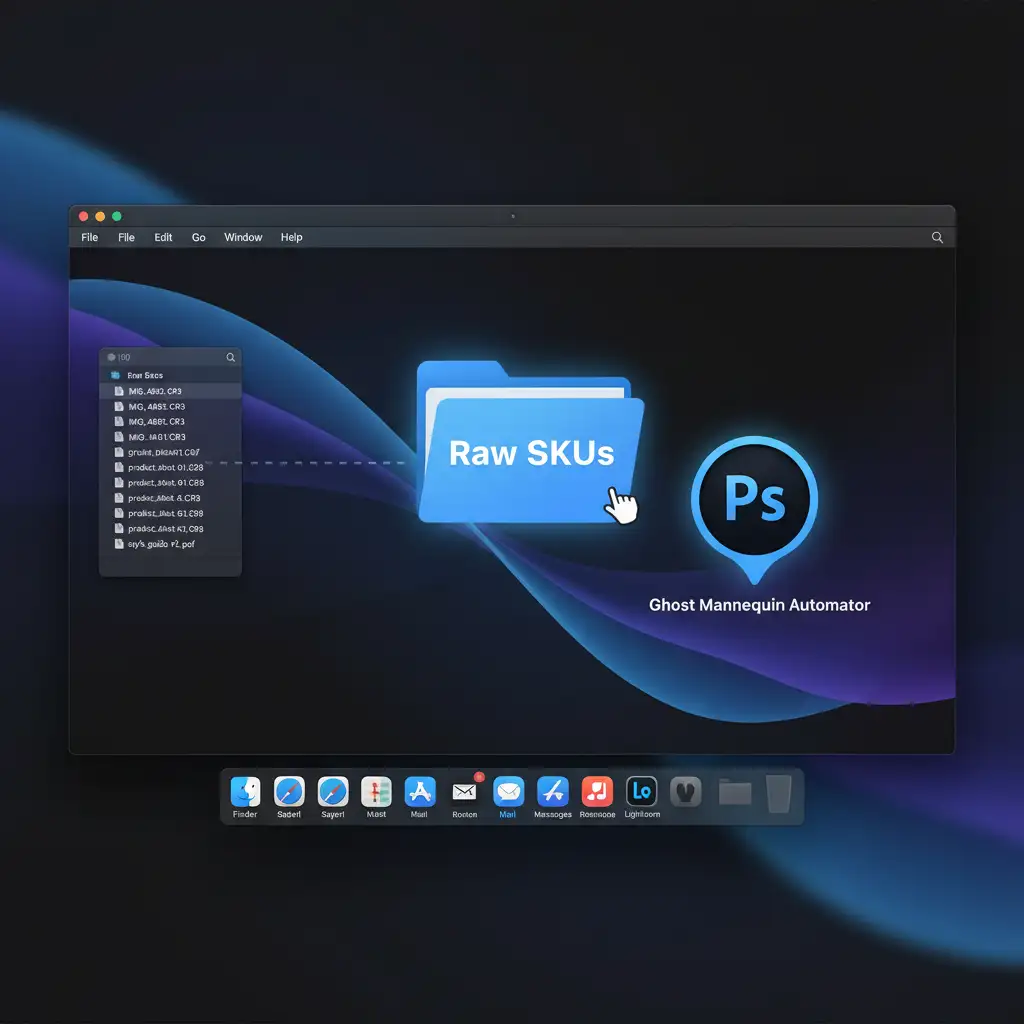 Export your ghost mannequin action as a Photoshop Droplet. This creates a standalone application icon on your desktop. You can drag and drop entire SKU folders directly onto the droplet to trigger the automation in the background.