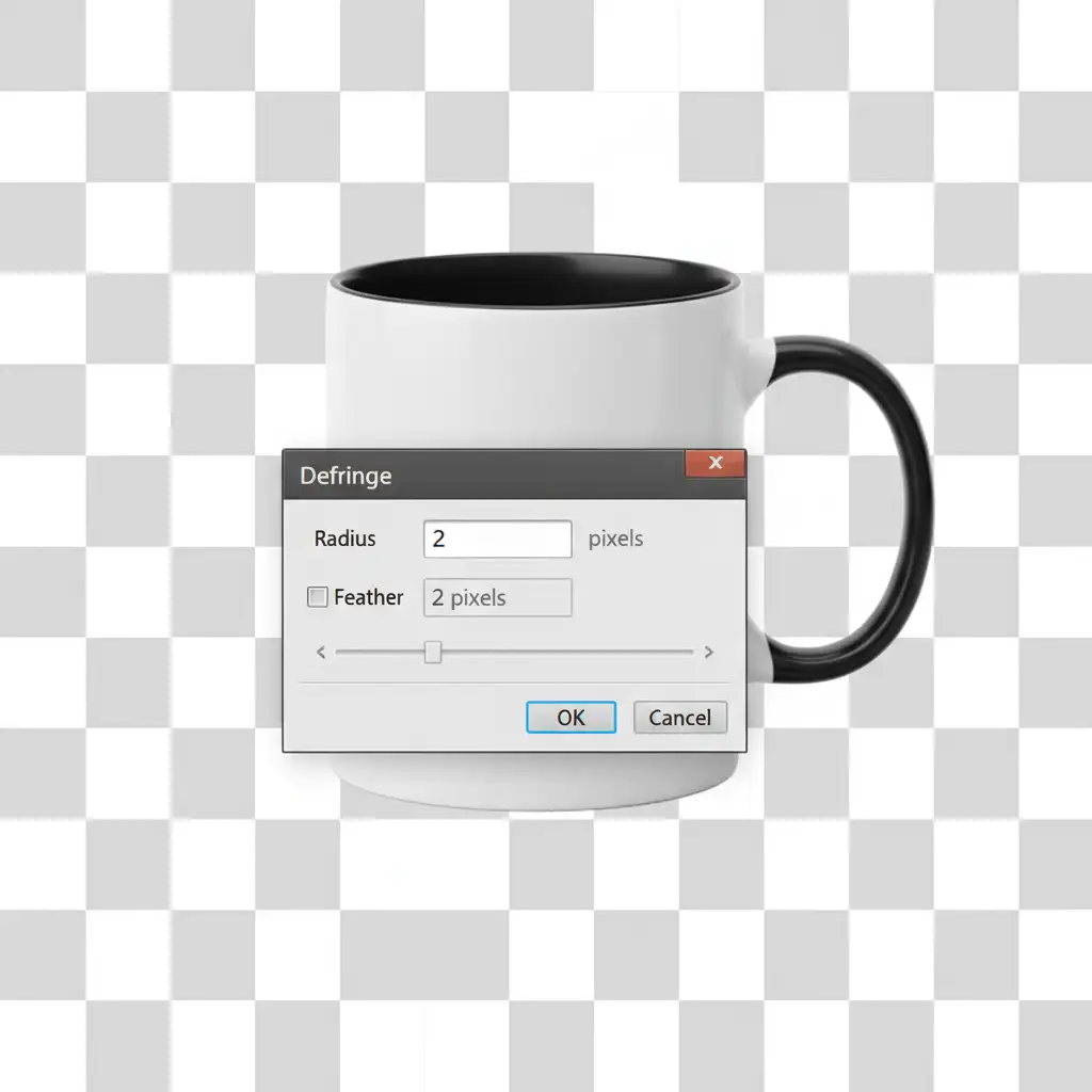 - Enter a value of 1-2px in the Defringe dialogue box. This commands Photoshop to replace the contaminated edge pixels with the pure colors from slightly further inside the product.