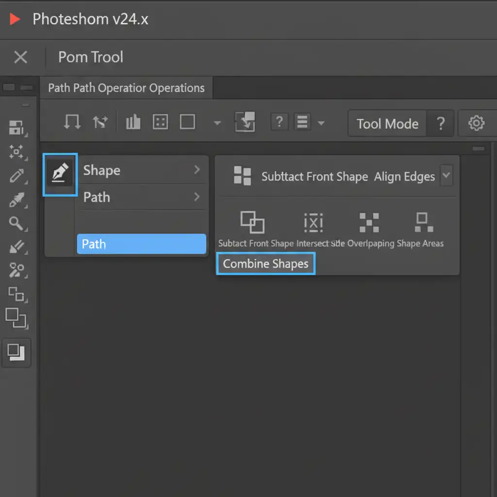 - In the top Options bar, ensure your tool is set to Path mode and the Combine Shapes operation is active.