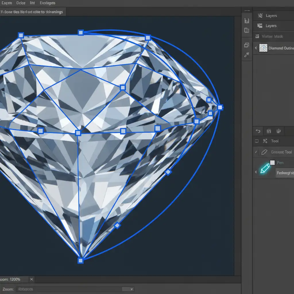 For highly complex pieces featuring transparent gems (like emeralds or clear quartz) where light completely passes through the stone, standard vector paths will look too harsh. You need a hybrid approach.