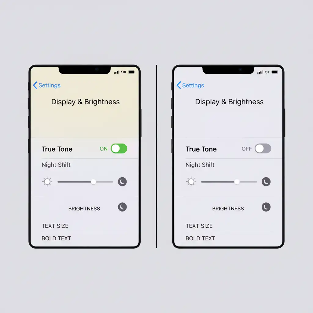 - On iPhone: Go to Settings > Display & Brightness > Toggle True Tone OFF.