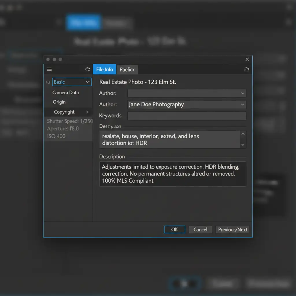 As automated MLS scanners become more advanced, proving your edits are ethical is just as important as the edits themselves. Implementing an EXIF metadata workflow in Photoshop v27.x acts as a digital certificate of authenticity.