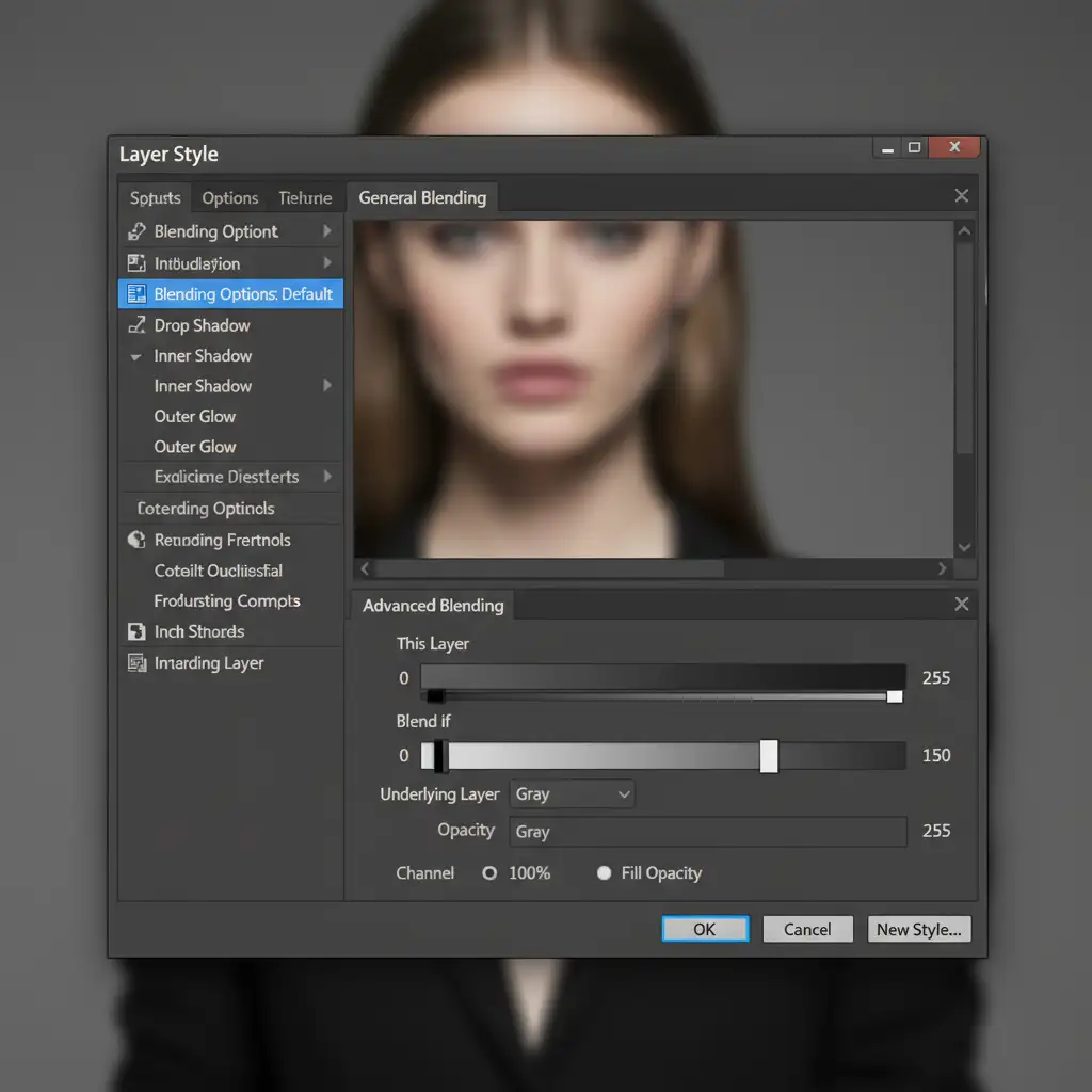 - Navigate to the Blend If section at the bottom (Underlying Layer).