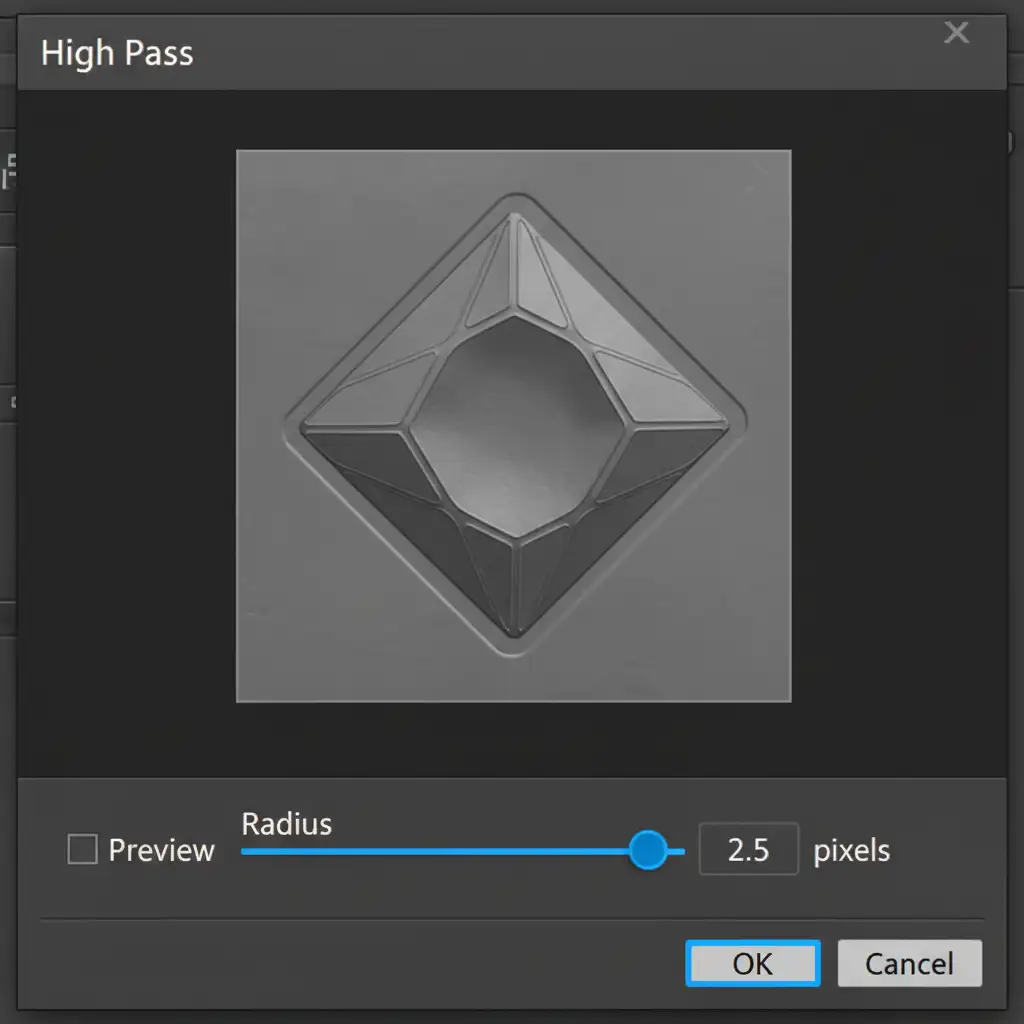 This paints the crisp facet edges back into the gemstone. Finish by creating a 50% gray layer and utilizing manual dodge and burn to enhance the micro-contrast along the newly restored facet lines.