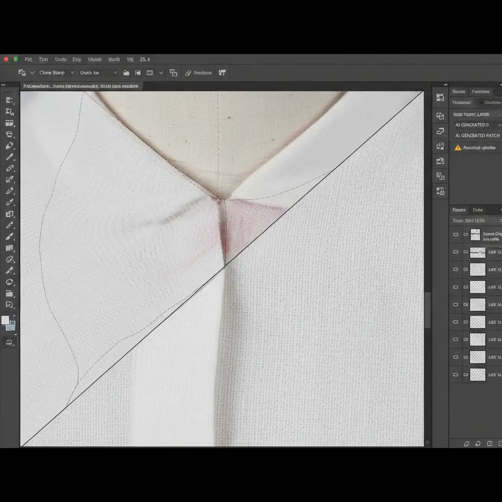 You just finished shooting a flawless apparel catalog. You bring your raw files into Photoshop v25.x, line up the inner neck insert with the front chest, and hit Generative Fill to seamlessly merge the ghost mannequin neck joint. But instead of a perfect composite, you are left with a disaster: a blurry, melted patch of pixels that looks completely unnatural next to your high-resolution fabric.