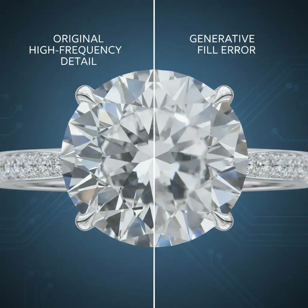 To fix the problem, you must understand why it happens. Diamonds rely on crisp facet lines, sharp light dispersion, and distinct micro-contrast to look authentic. When you run Generative Fill over or near a gem, the AI model often interprets these precise geometric facets as digital noise.