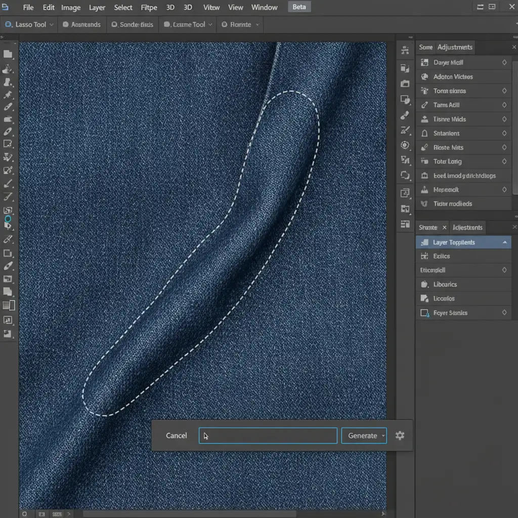 Select the wrinkled area and use Generative Fill to smooth the garment. Leave the prompt blank to allow the AI to match the surrounding context.