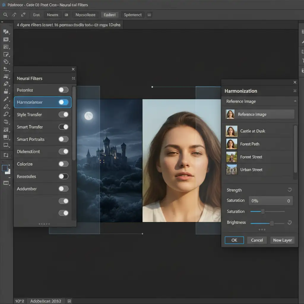 If manual color grading isn’t your strong suit, Photoshop’s Neural Filters offer an incredible AI-assisted shortcut to map the color palette of your background directly onto your generated object.