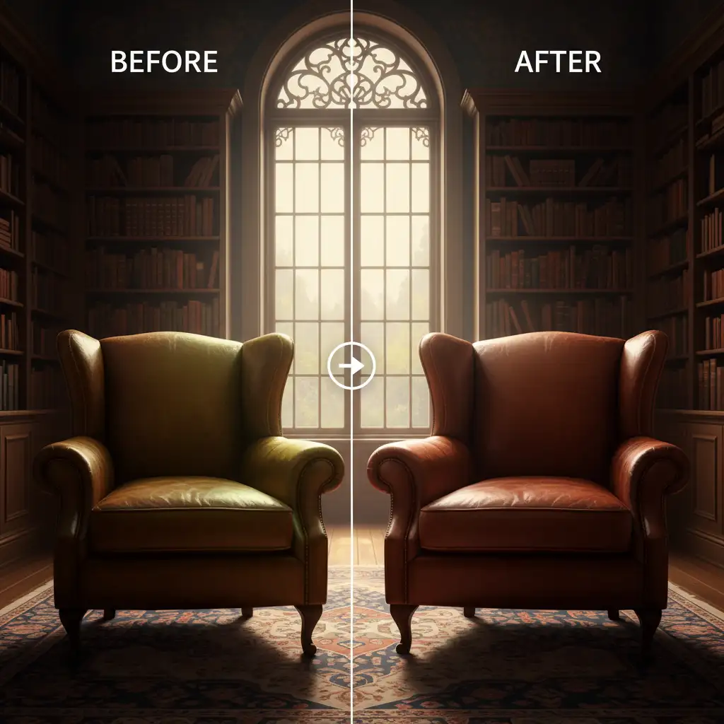 Instead of prompting: “A vintage leather chair” Try prompting: “A vintage leather chair, harsh directional sunlight from the left, cool studio lighting, deep shadows”