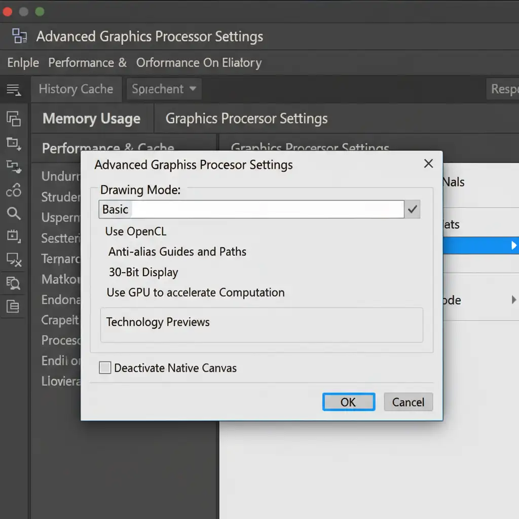 If you still experience micro-stutters after deactivating the native canvas, your GPU might be struggling with the advanced rendering pipeline. Scaling back the Drawing Mode reduces the immediate load on your Mac’s graphics processor.