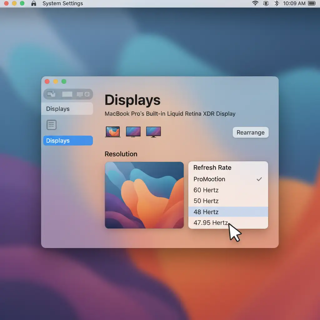 For users on high-end MacBook Pros or Studio Displays, Apple’s variable refresh rate technology can sometimes clash with Adobe’s fixed UI rendering. Locking your ProMotion display to a standard refresh rate often forces the software to behave.