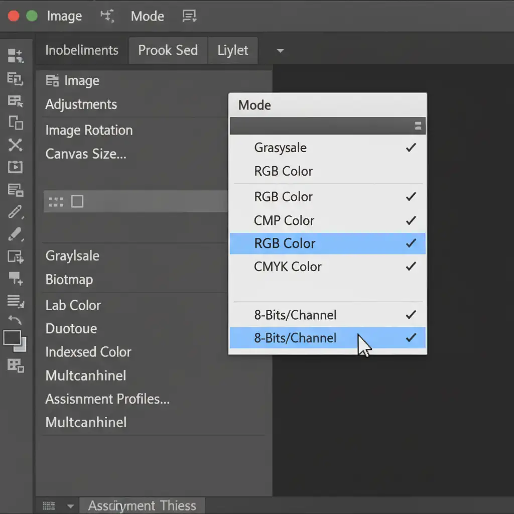 - Navigate to the top menu and click Image > Mode.