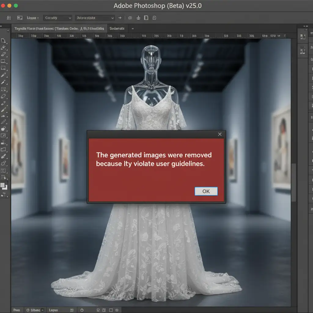You are in the middle of a massive e-commerce photoshop retouching batch, utilizing Adobe’s latest AI tools to speed up your ghost mannequin edits. Suddenly, a red warning halts your progress: “The generated images were removed because they violate user guidelines.”