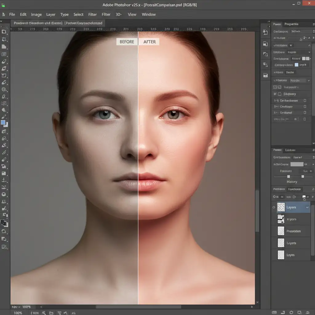 [Image Placeholder: Split-screen comparison showing muddy AI skin on the left and corrected, vibrant skin on the right.] Alt-text: Split-screen comparison demonstrating how to fix Photoshop Generative Fill skin tone mismatch on a portrait.