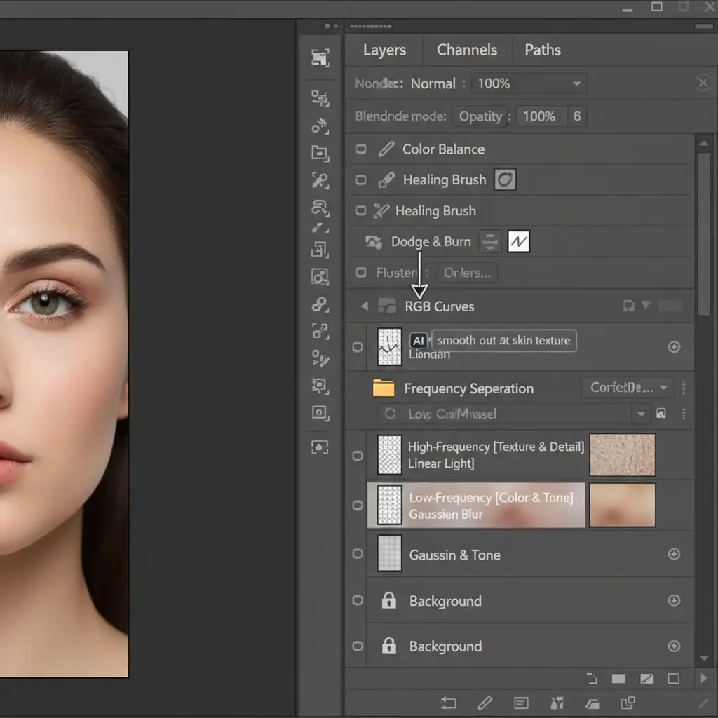 When dealing with high-end commercial retouching, you must preserve skin texture while manipulating color. This method combines proactive prompt engineering with a 16-bit Frequency Separation workflow.