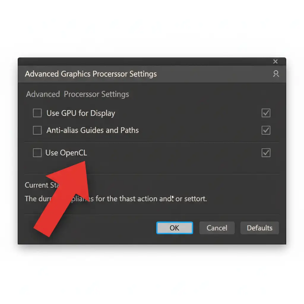 - In the new dialog box, uncheck the box labeled Use OpenCL.