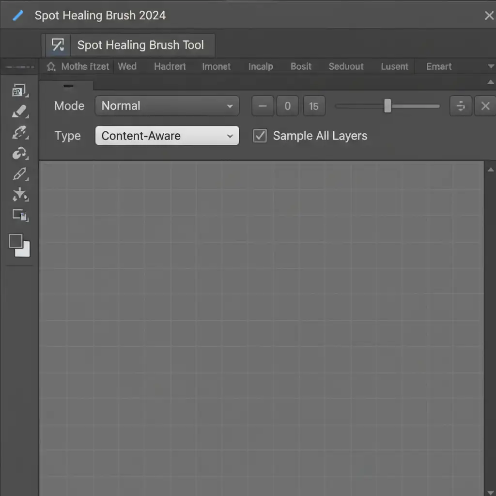 - Configure the Tool: Select the Spot Healing Brush Tool (J).