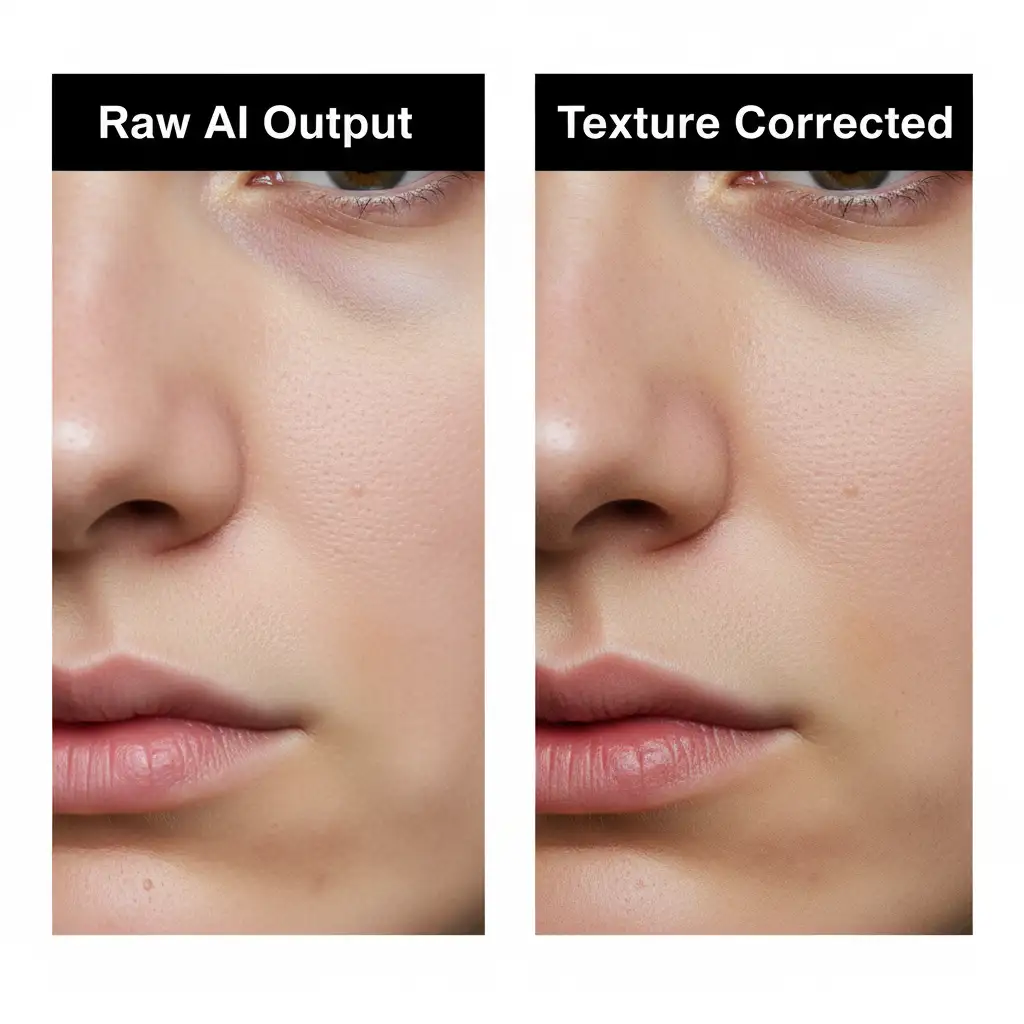 Even with a reference image, the AI might slightly shift the skin’s color phase. To fix this: