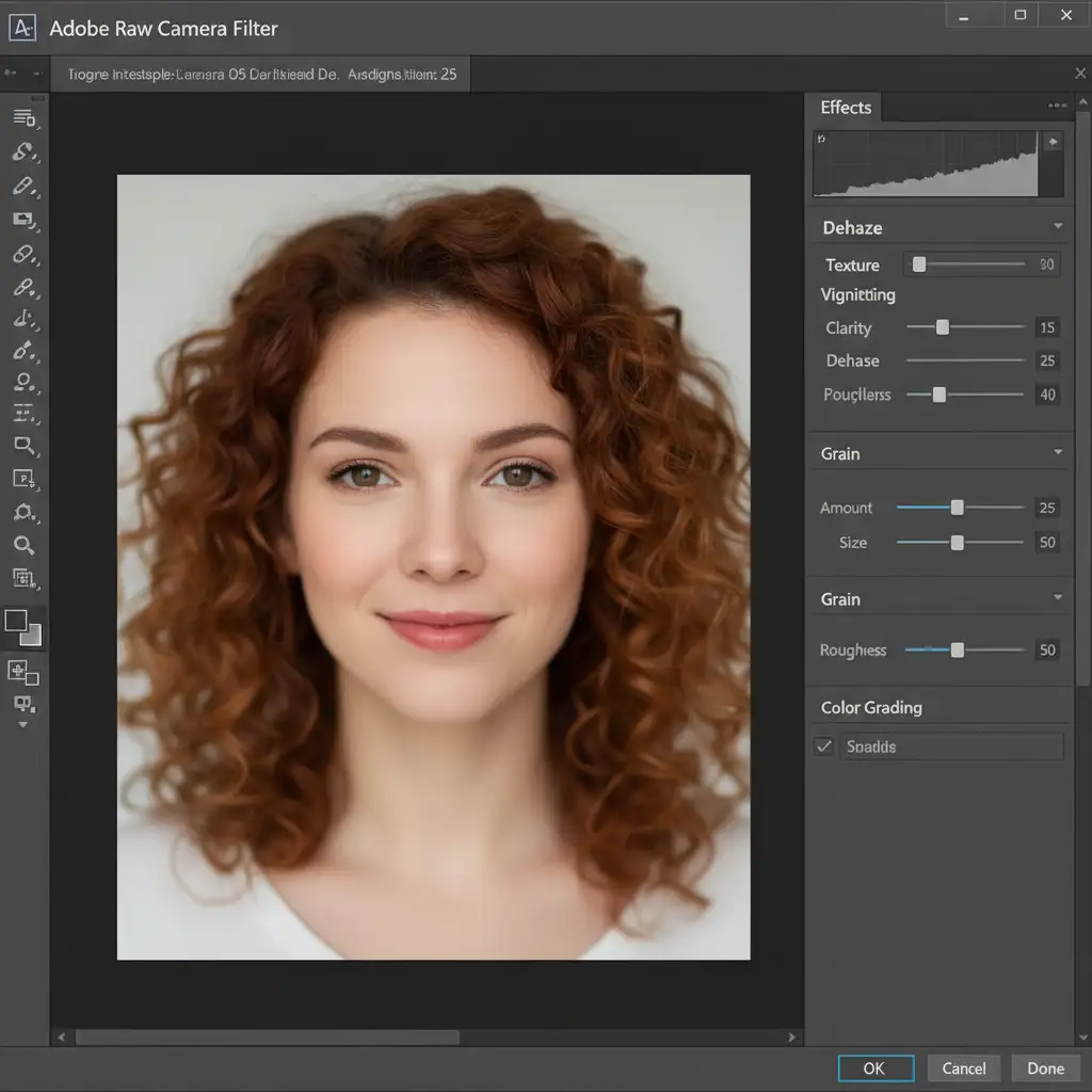 - Match the Grain: Open the Effects panel. To match a standard studio portrait, start with these baseline settings: