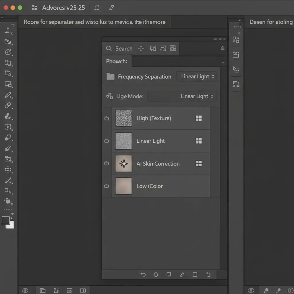 Frequency Separation splits your image into a Low layer (color and tone) and a High layer (texture). By placing your AI edits strategically, you can fix underlying tones while preserving authentic texture.