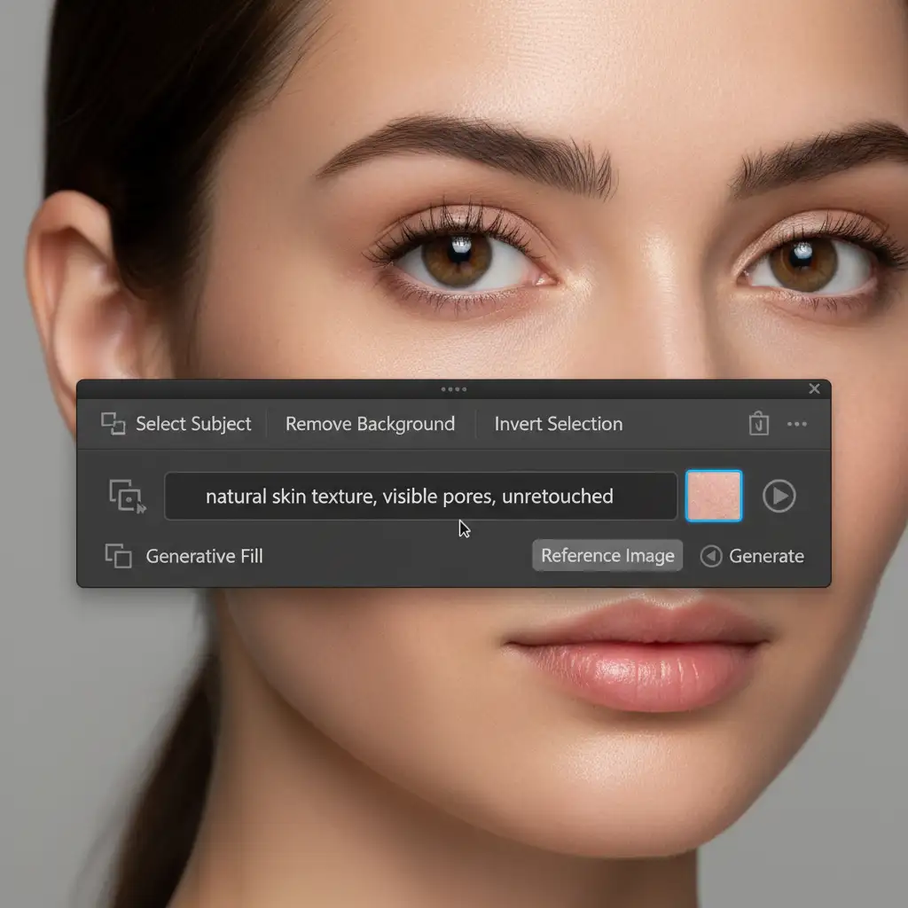 For high-end beauty and fashion retouching, noise alone isn’t enough. You need the subject’s actual skin pores. This is where integrating the Firefly Image 3 Model with traditional Frequency Separation becomes a game-changer.