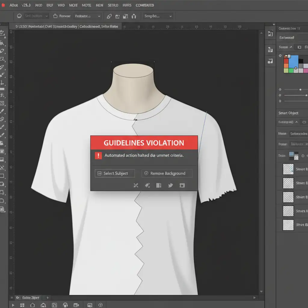 You are in the middle of a massive e-commerce retouching batch, reconstructing ghost mannequin necklines. You make your selection, hit “Generate,” and instead of a seamless collar, Photoshop slaps you with a red warning. Your workflow halts instantly.