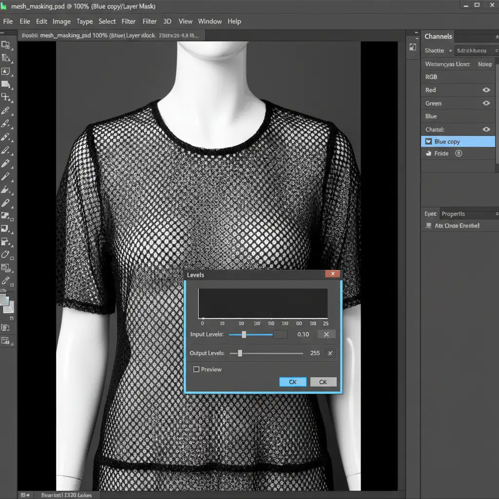 For garments that are entirely sheer, such as mesh tops or sheer lingerie, edge refinement isn’t enough. You need Channel Masking to create a pixel-perfect selection based on contrast.