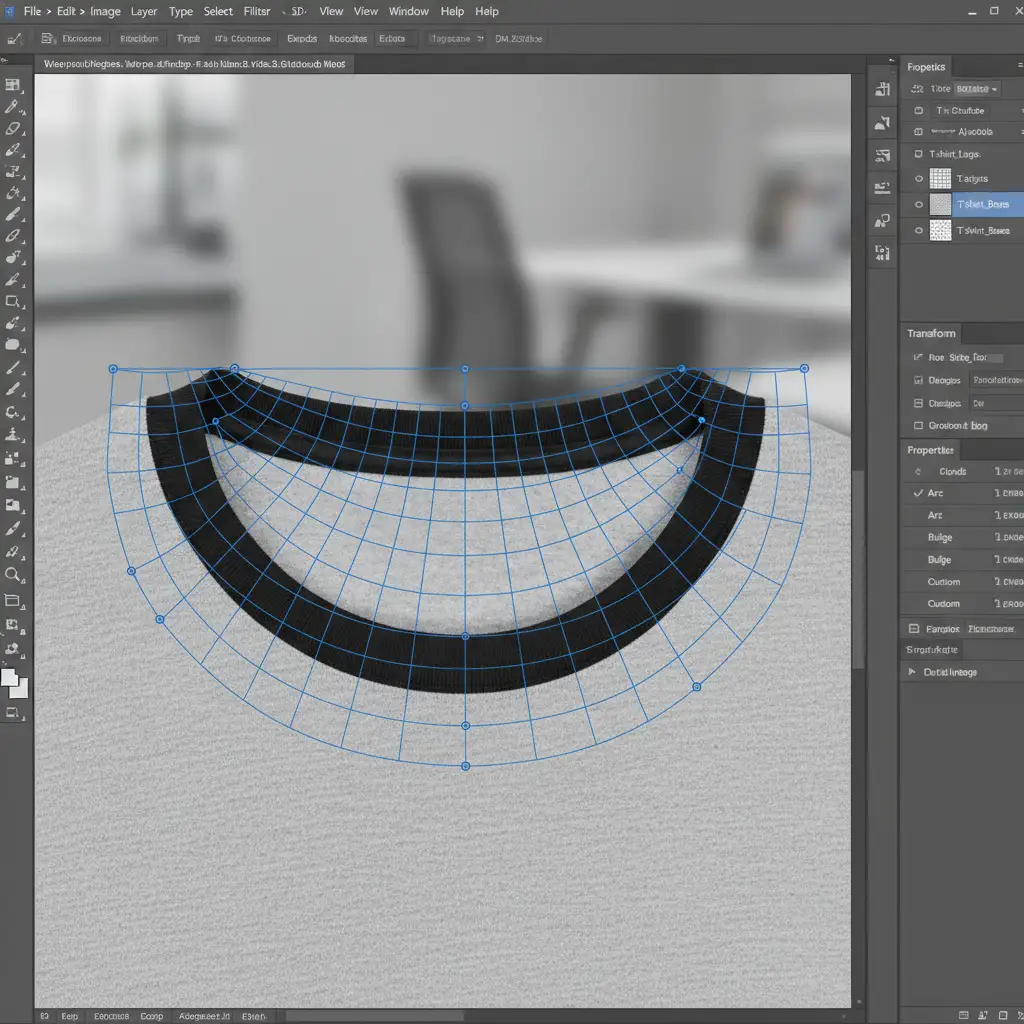 - Shape the Collar: With the inner collar layer selected, navigate to Edit > Transform > Warp. Use the warp tool grid to push and pull the fabric so it perfectly matches the curvature of the front collar.