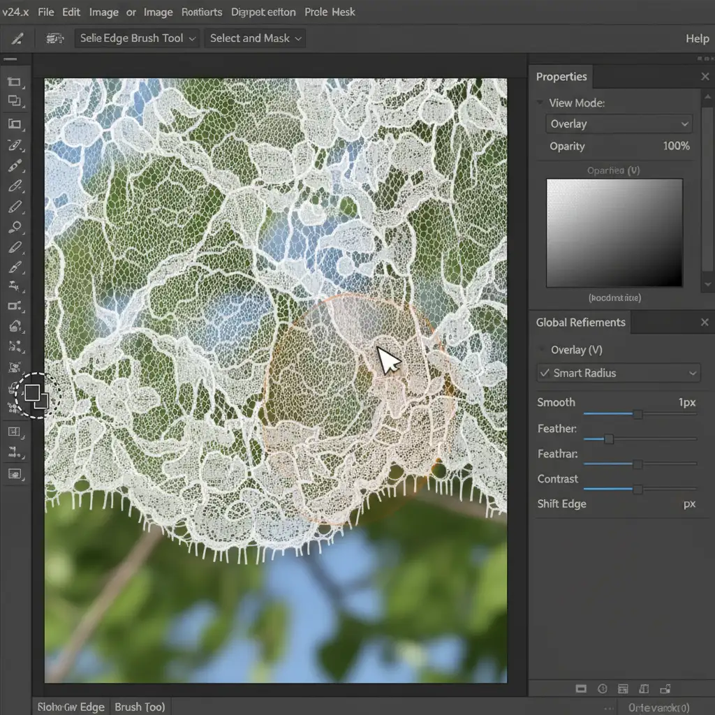 If you need to quickly restore some edge detail on a lightly textured lace garment, the Select and Mask workspace is your first line of defense.