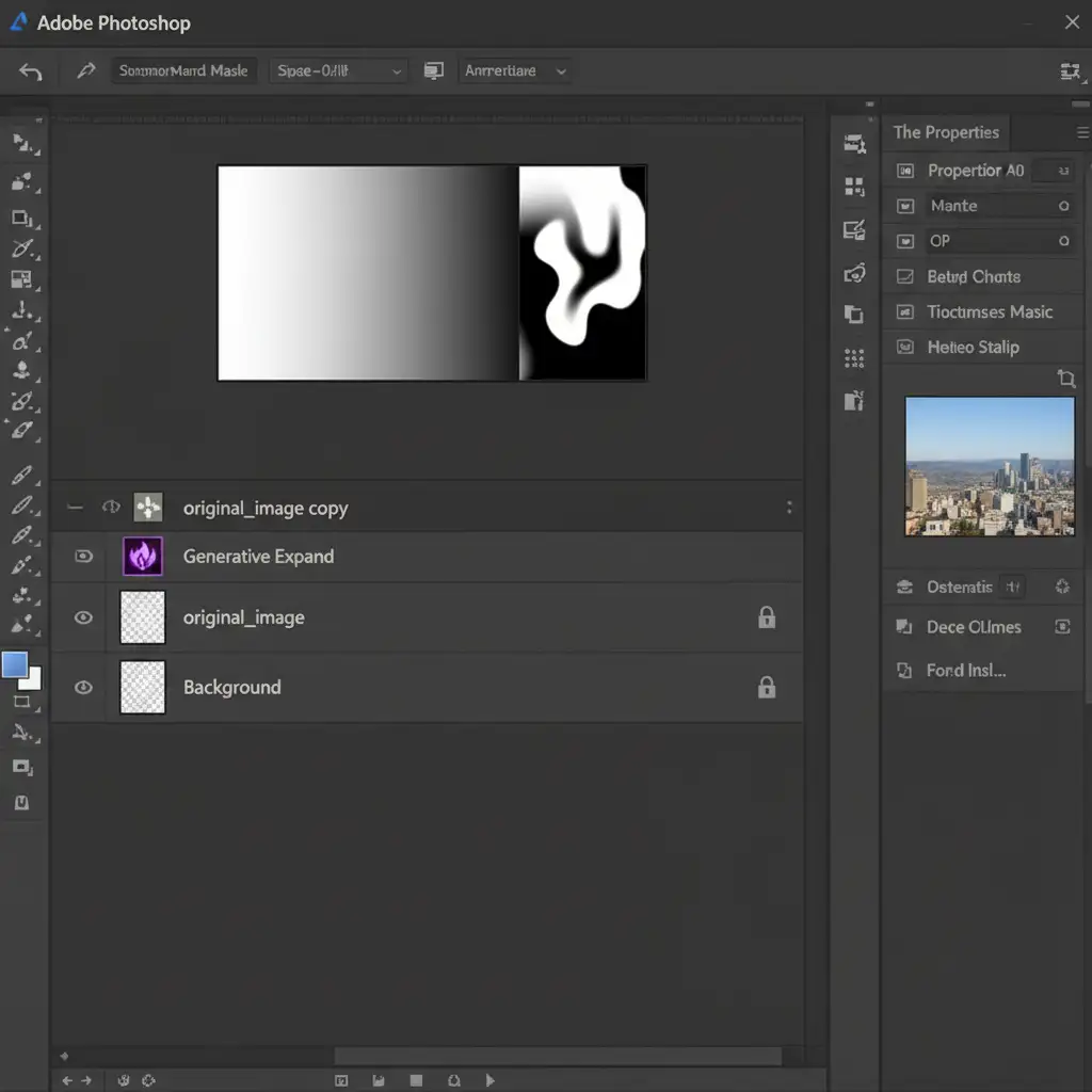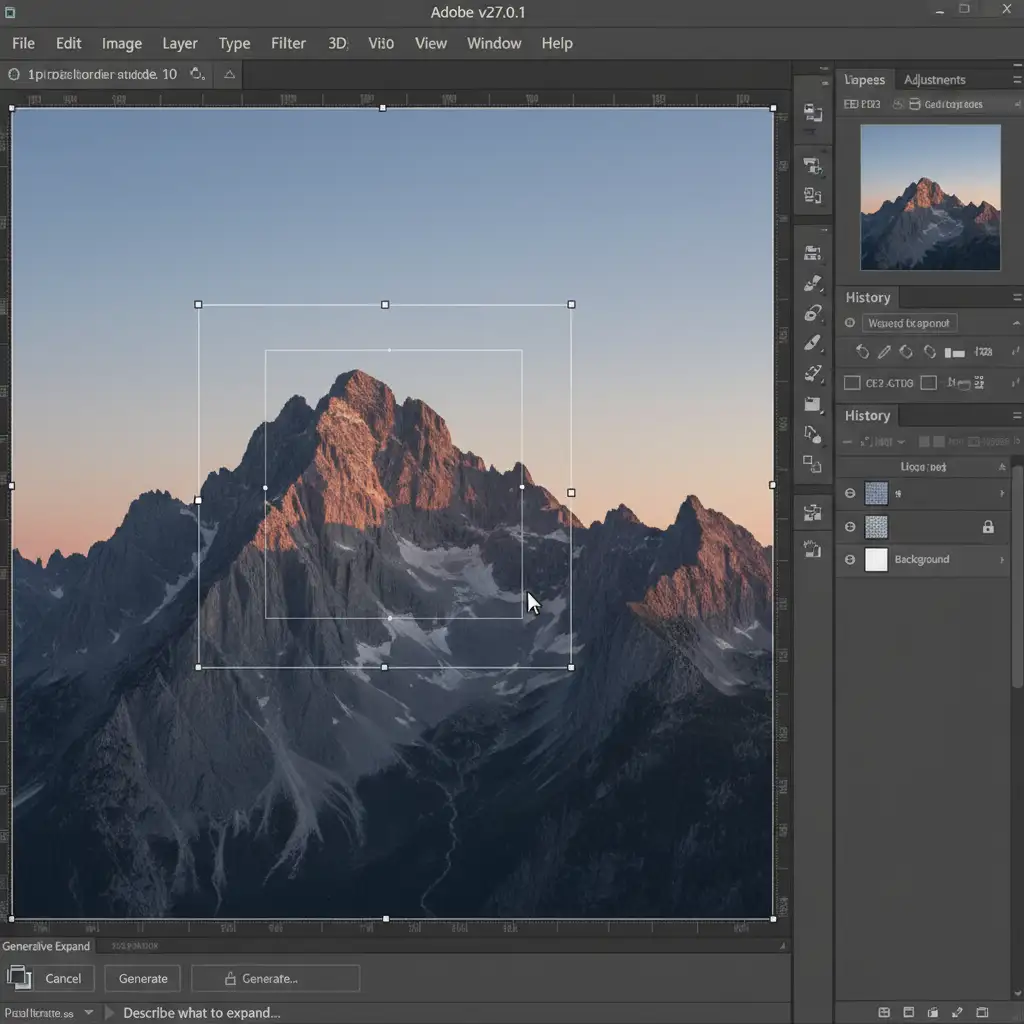Generate your expansion as usual. Once the Generative Fill layer is created, duplicate your original high-resolution base layer and drag it to the top of the layer stack. Add a Layer Mask to this top layer. Select a soft-edged Brush Tool (B) set to 30 percent opacity and gently feather the edge where the original image meets the generated pixels.
