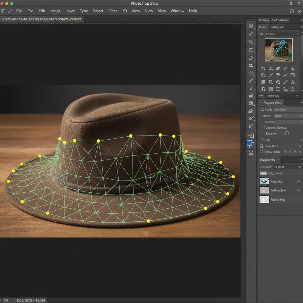 - Fix Structural Sagging: If the straps or hat brims sagged during the interior shot, use the Puppet Warp tool. Drop pins along the edge of the material and gently push the mesh to restore the rigid structural curve.
