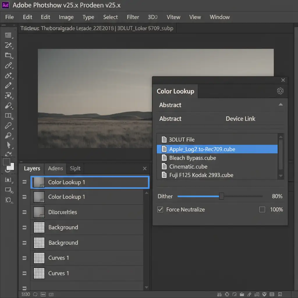 - Navigate to the Adjustments panel and add a Color Lookup adjustment layer.