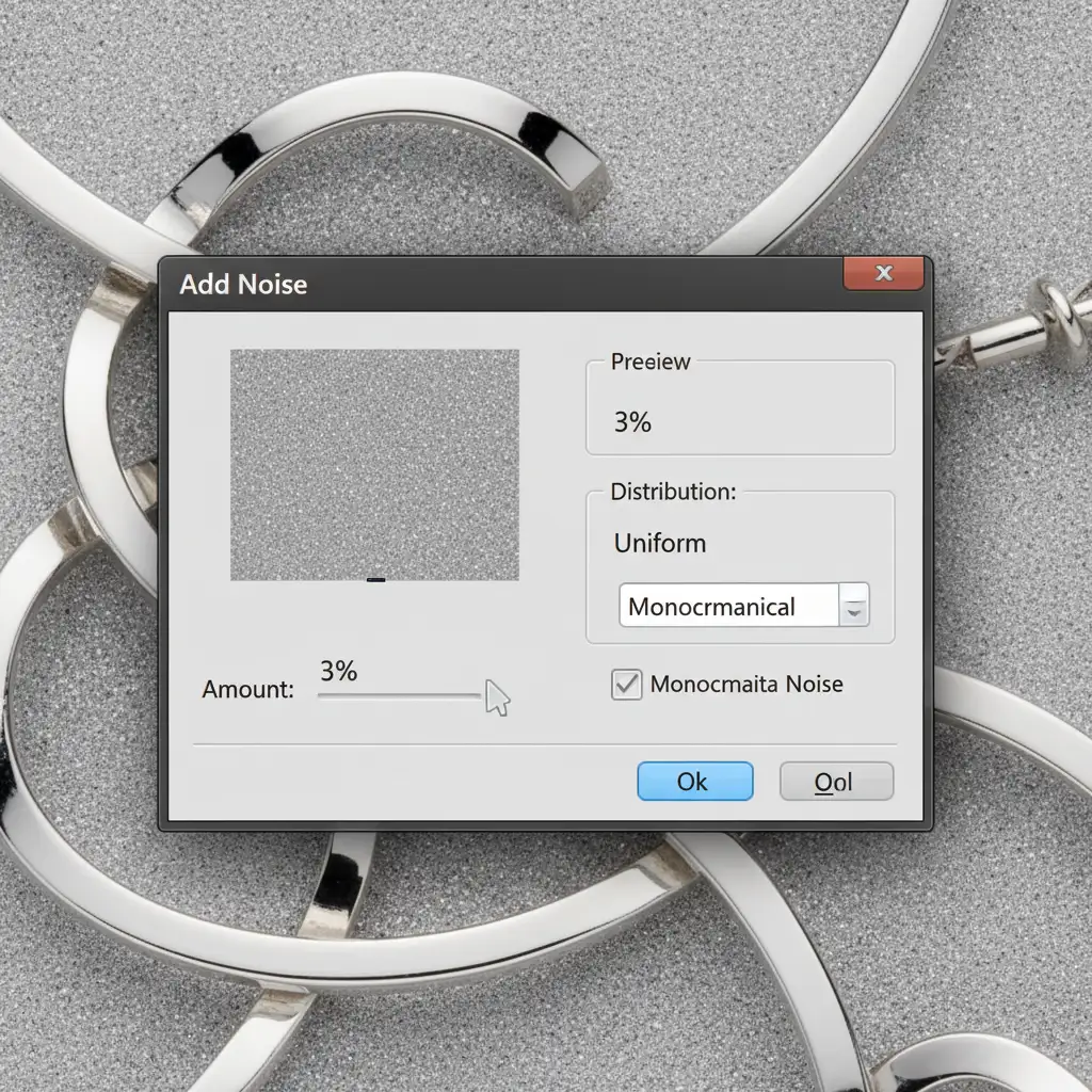 Sometimes, the AI damage is so severe that the edges of the jewelry are completely eroded. In these cases, you must manually rebuild the geometry using pen tool vector paths and execute precise noise matching so the repair doesn’t look like a plastic 3D render.