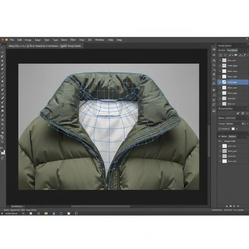 If you are battling oversized puffer jacket neck joint alignment in Adobe Photoshop v25.x, simple 2D scaling won’t cut it. You need advanced spatial distortion to maintain that bulky streetwear aesthetic. Here is exactly how to preserve 3D volume without compromising structural integrity.