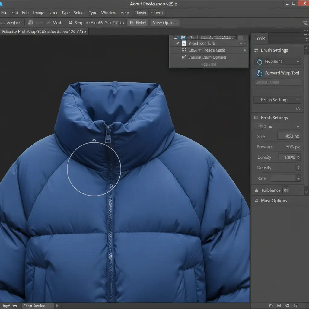 When dealing with extreme volume in oversized streetwear, the Warp tool can sometimes stretch fabric textures unnaturally. The Liquify tool offers superior control for pushing heavy padding into place.