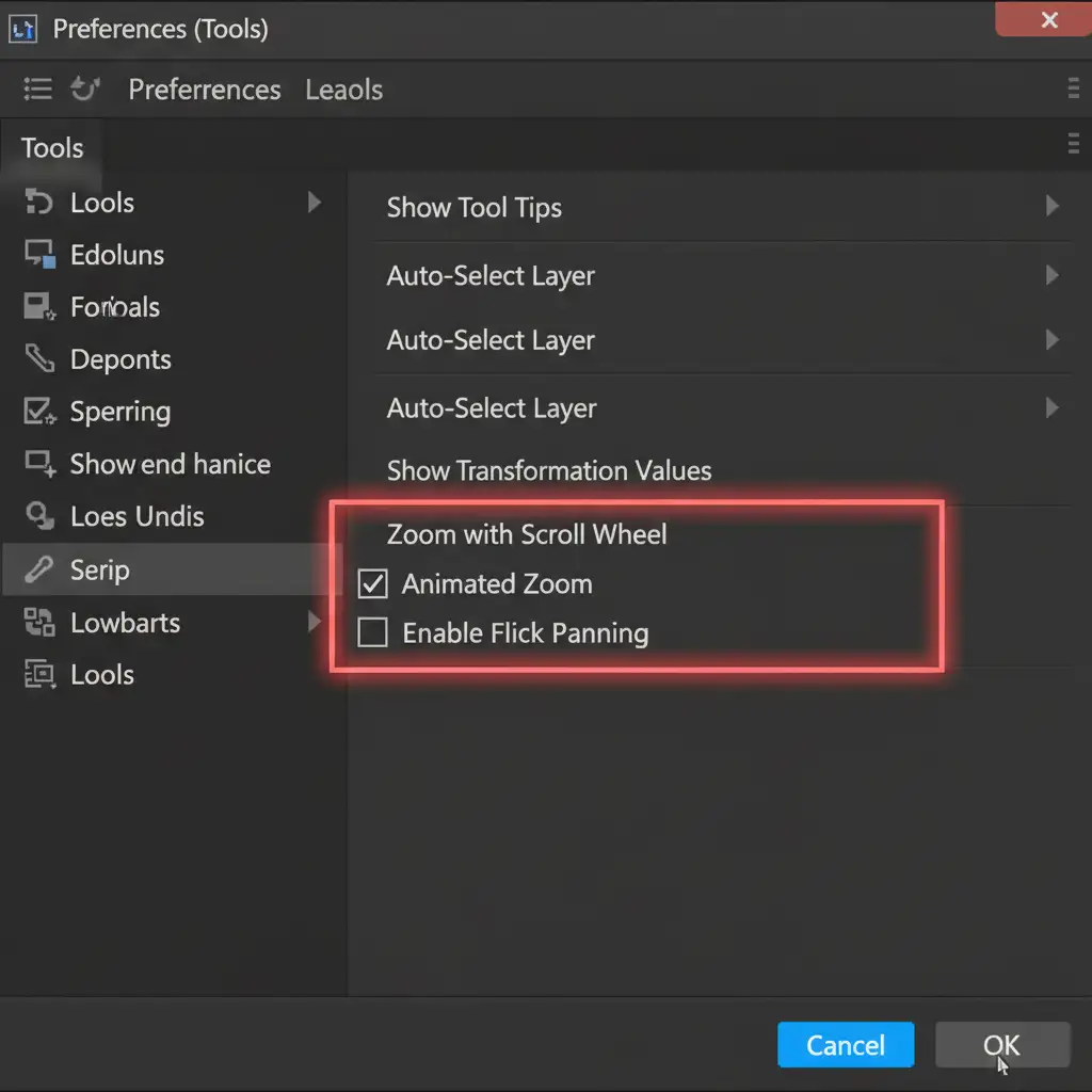 - Locate the options for Animated Zoom and Enable Flick Panning.