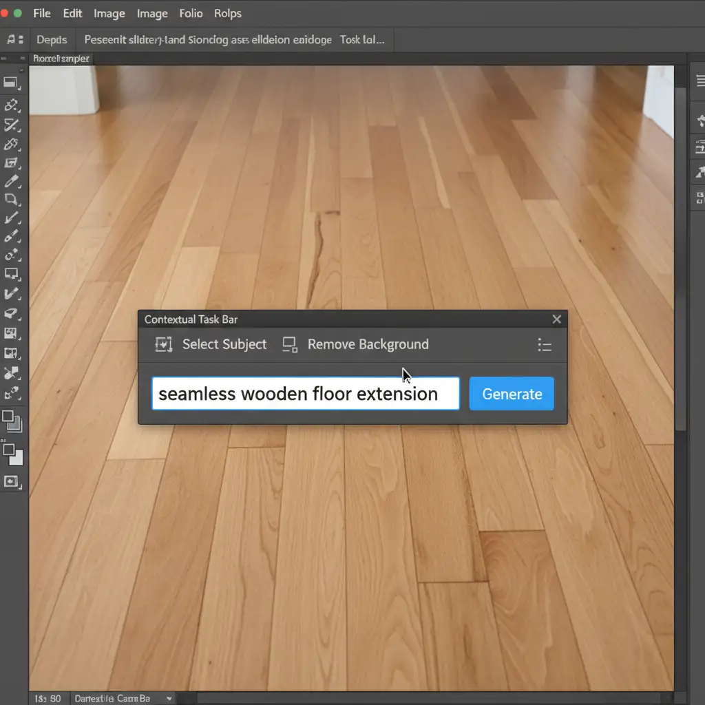 - In the Contextual Task Bar, do not leave the text field blank. Type explicit, safe architectural terms like “empty wall”, “wooden floor”, or “clear blue sky”.