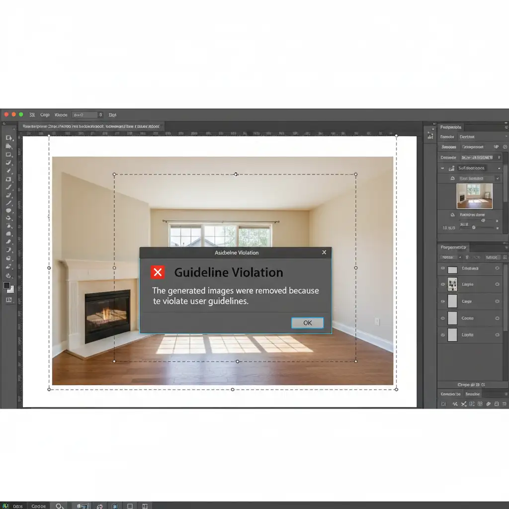 You are on a tight deadline to deliver a property gallery, but you are stuck because Photoshop AI Expand is not working for real estate photos. Instead of a beautifully extended living room or a perfectly widened exterior, you are hit with a frustrating “Guideline Violation” or “Generative Fill is currently unavailable” error. Why does Adobe Firefly AI flag empty rooms or architectural reflections as policy violations? If you are tired of cloud-based rendering failures and false-positive safety triggers ruining your editing workflow, you are in the right place. Let’s explore how to bypass these frustrating errors and get your real estate edits back on track.