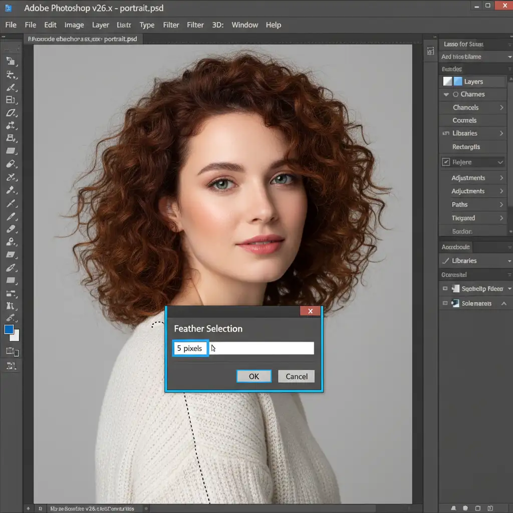 - Before drawing your selection, press Shift+F6 to open the Feather Selection dialog box.
