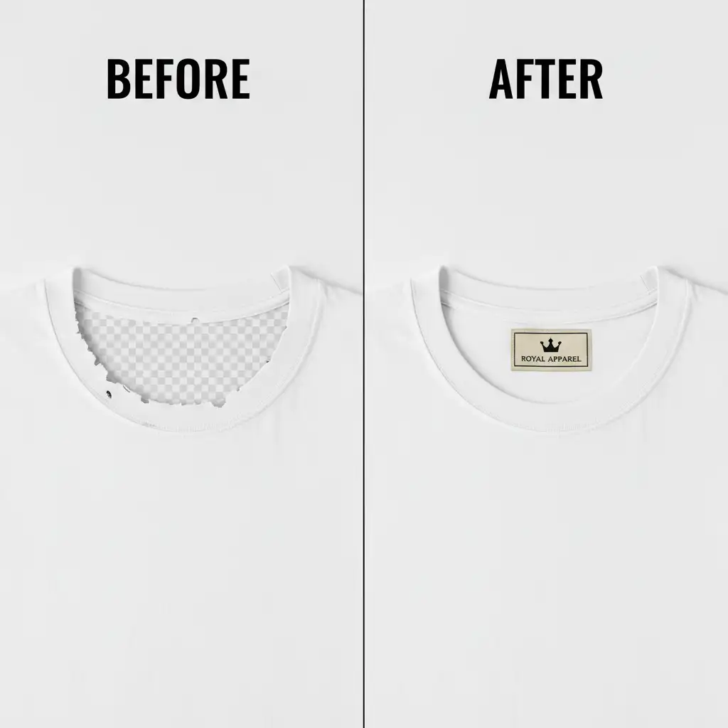 - Do Use Non-Trigger Words: “fabric interior”, “cotton shirt collar inside”, “seamless inner garment”, or “blank background”.
