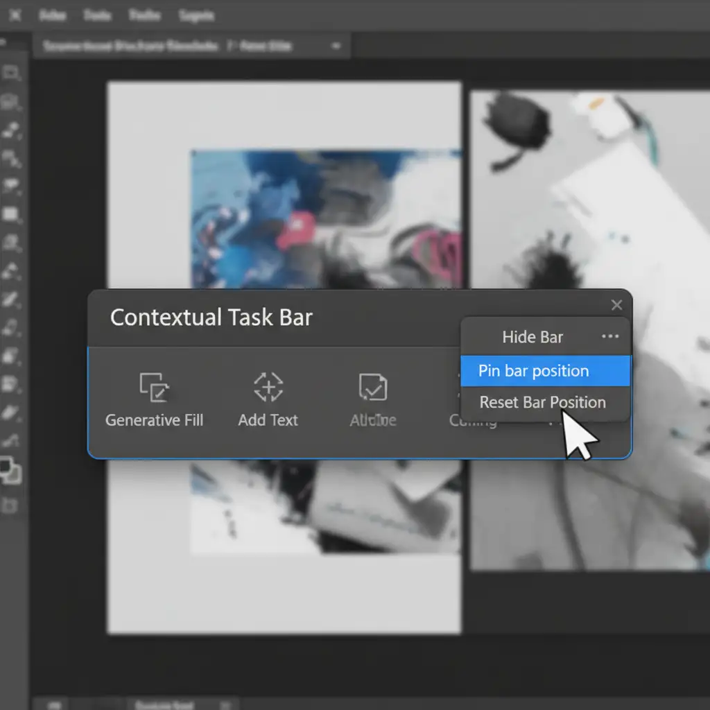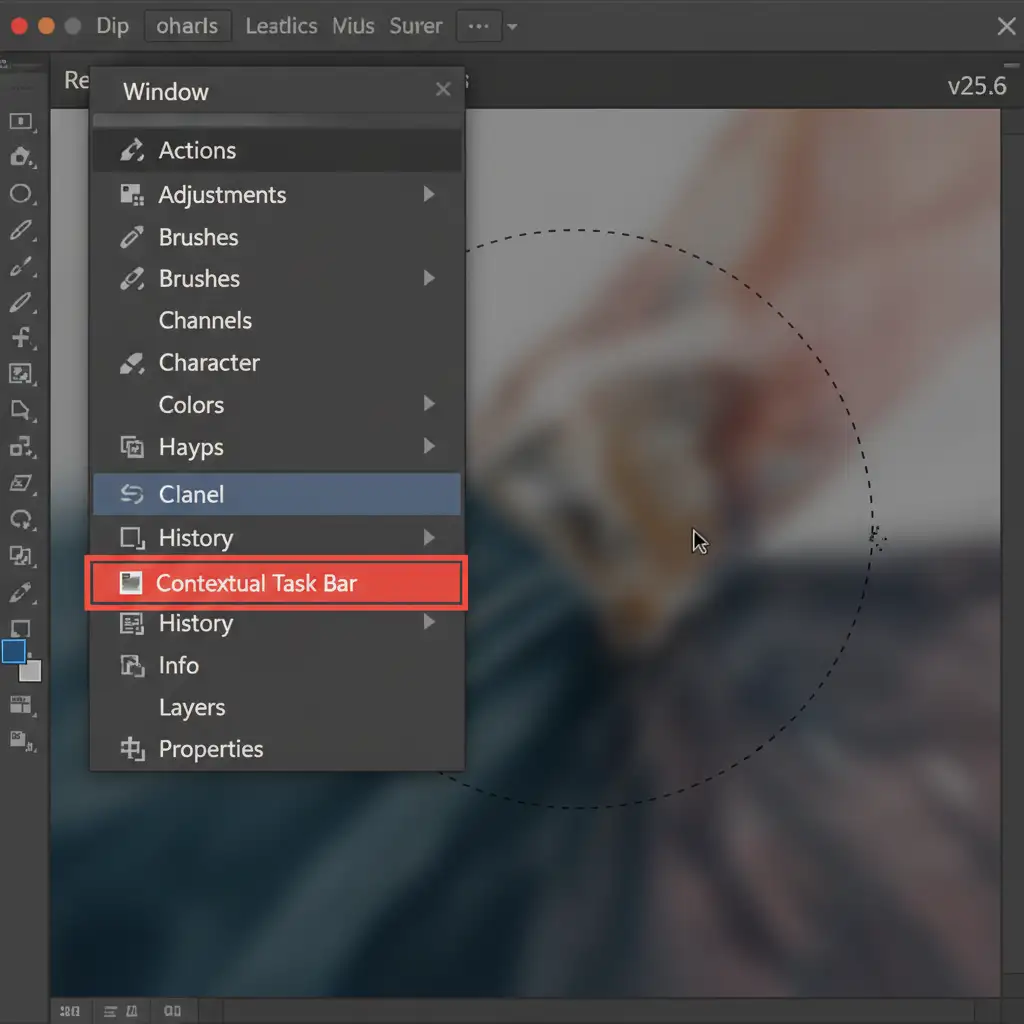 In Photoshop v25.6, the Contextual Task Bar is designed to be dynamic, appearing near your cursor when you make active selections. However, a known UI state glitch causes the bar to unpin or hide completely. This usually happens when users switch tools rapidly, use custom workspaces, or update from a previous version without clearing their software cache.