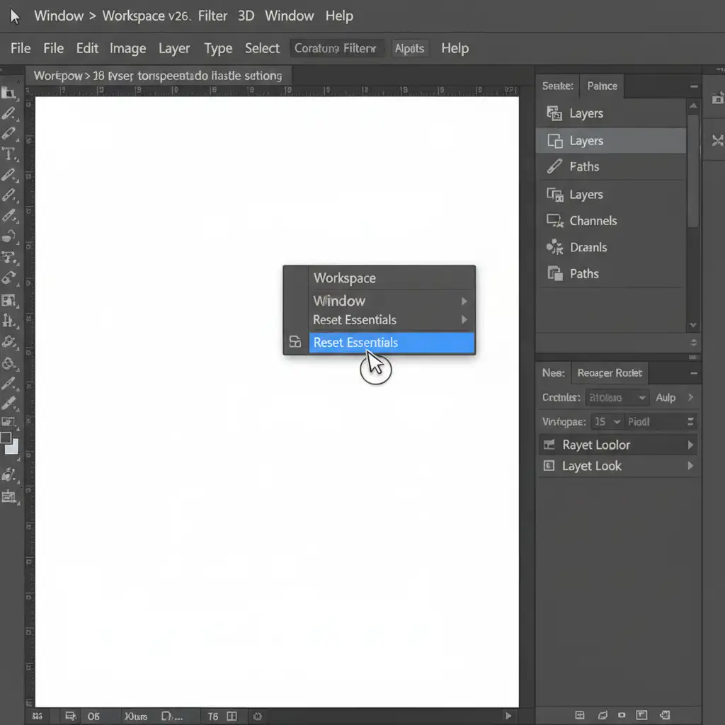 - Go to Window > Workspace > Reset [Current Workspace] (e.g., Reset Essentials).
