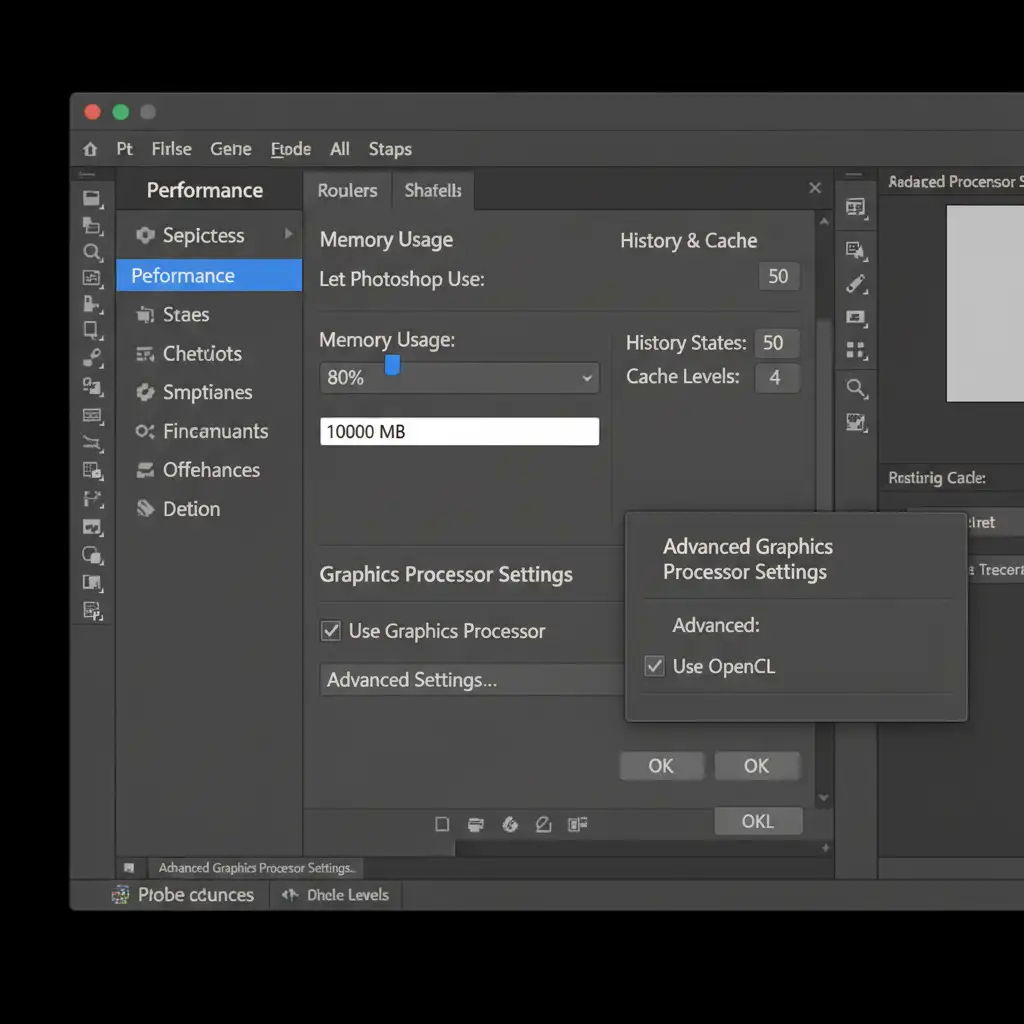 - Increase the Memory Usage slider to allocate exactly 80 percent of your available RAM to Photoshop. This feeds the Adobe Sensei engine the memory it needs.