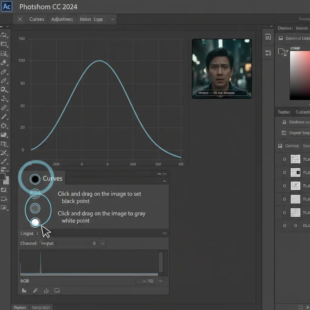 For professional retouchers who need granular control over shadows, midtones, and highlights, a Curves Adjustment layer provides mathematical precision.