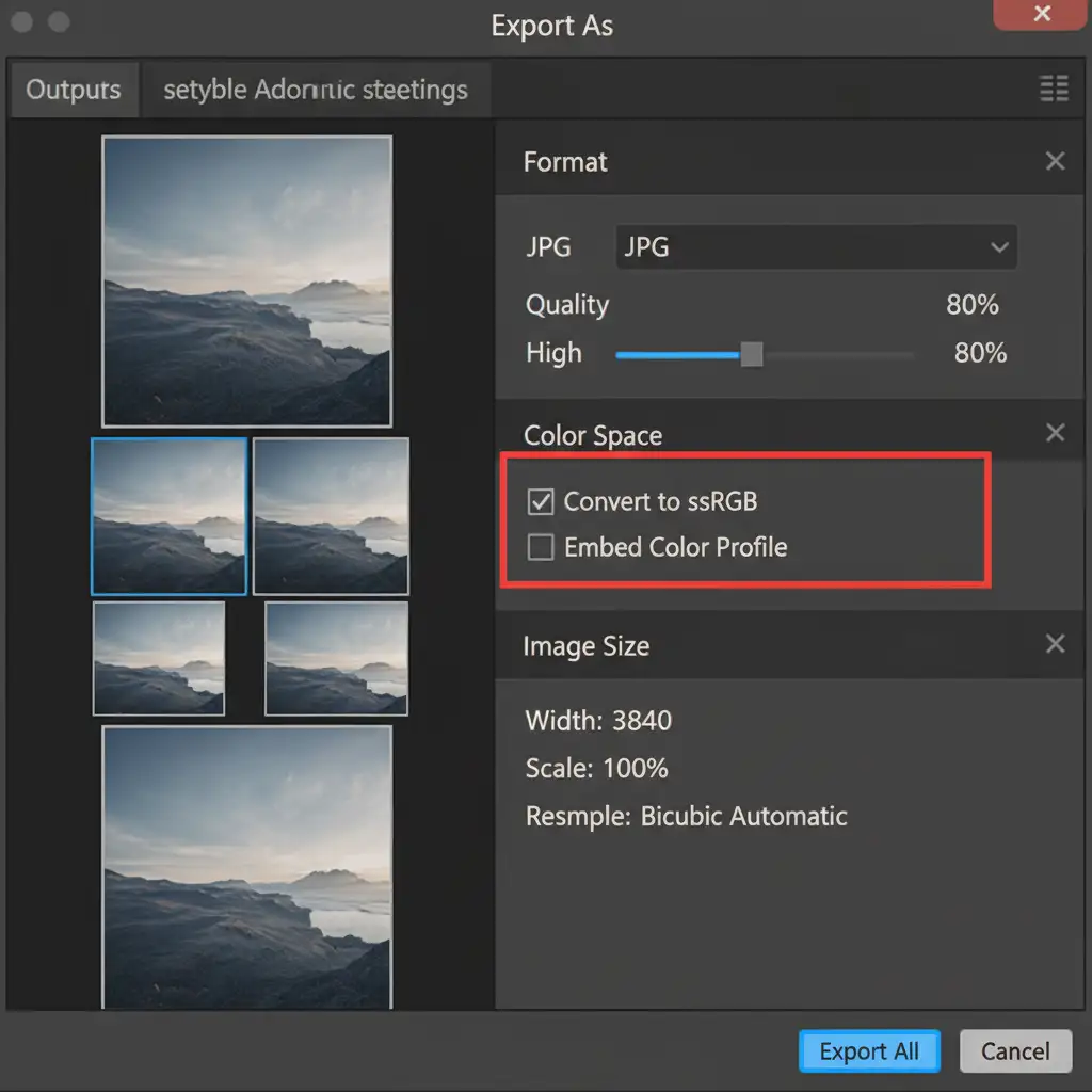 - Exporting for LinkedIn: Go to File > Export > Export As. Choose JPG format. Crucially, ensure “Convert to sRGB” and “Embed Color Profile” are checked. If you skip this, your colors will shift and look dull when uploaded to web browsers.